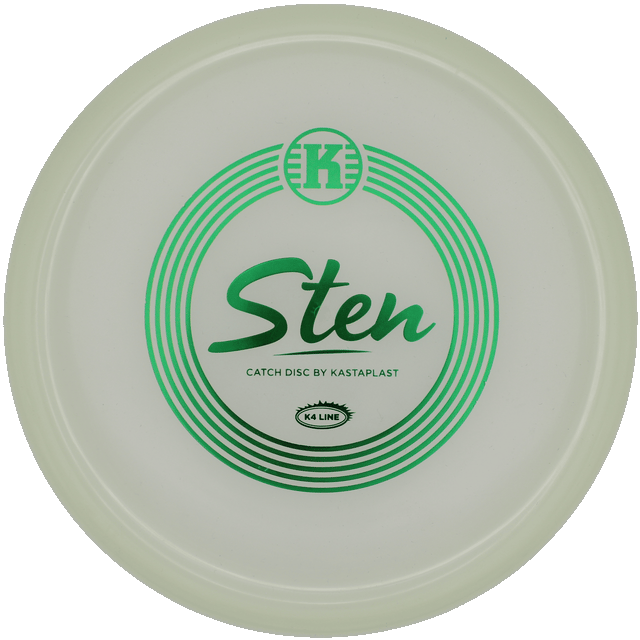 Mach die Nacht zum Tag und deine Annäherungen zur absoluten Gewissheit. Die Kastaplast Sten im brandneuen K4 Glow Plastik ist da. Wie der schwedische Name schon verrät, fliegt diese Scheibe wie ein 'Stein': präzise, kontrolliert und absolut unbeeindruckt von äußeren Einflüssen.